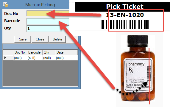 associated barcodes with the items to be picked. You will utilize the Microix Barcode software and your barcode scanning hardware to complete the task. After you are finished with your task, you can refer to article