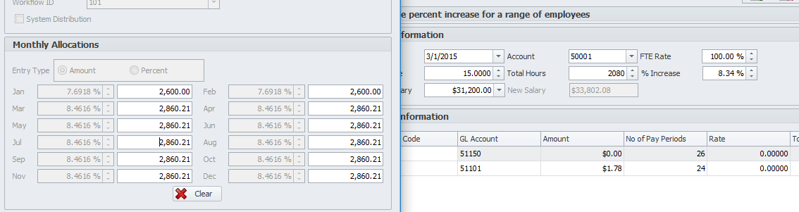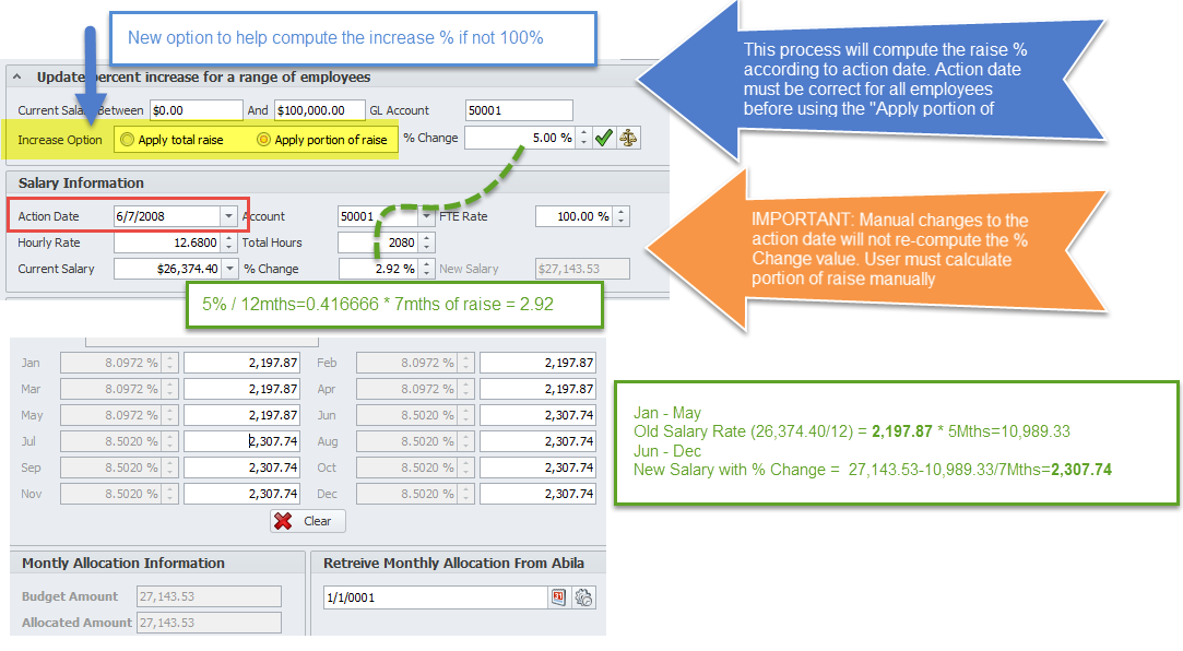 Additional Information on how to apply the raise/merit increase to a select range based on salary amount and salary expense code match.