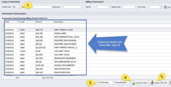 Employee – enter the user’s name who will be performing the task of importing the credit card statement