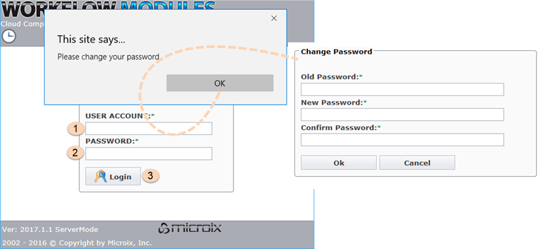 A. If you are new to using Microix Workflow Modules, you must change your default password. For existing Microix users, skip this process and go to section B.