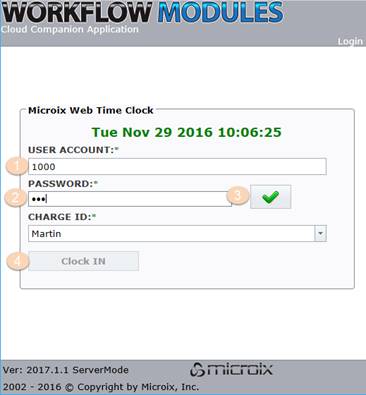 1. Navigate to your organization’s URL for Microix Web Companion Application and click on the clock icon