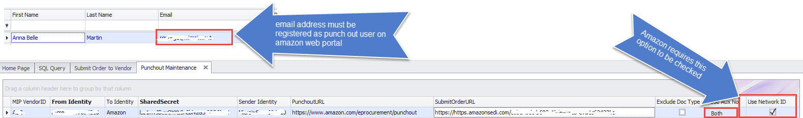 2. Configure Microix with your Amazon's Punchout credentials by navigating to the Punchout Maintenace.