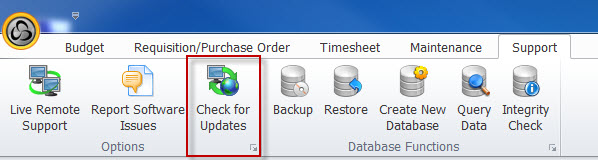 1. Navigate to the Ribbon Menu Support>Check for Updates. Click on the "Check Now" button and Microix will begin searching our FTP server for any available updates. If an update exists, a message will be displayed to the end-user.
