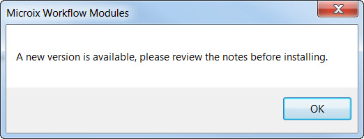 When checking for new updates, the process should be performed at any one PC where Microix Workflow Modules Client is installed. All other workstations will be prompted to update during their the login process. The updates will run from the Microix Share folder which is located on the MIP server.