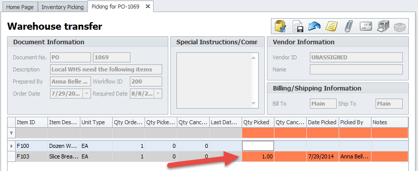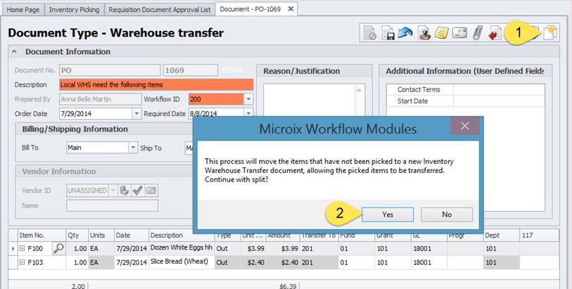 If the main warehouse does not have enough stock to fulfill a warehouse transfer, you have an option to split the order. The items currently on-hand will remain on the original order and the ones on backorder will split to a new order waiting to be filled at a later time when you replenish your stock level. Here are the steps to splitting a warehouse order: