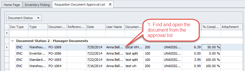 2. Navigate to approve documents and select the document you recently filled in step 1. Next, follow the instructions below to split the order.