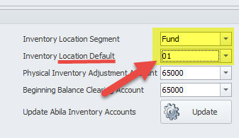 1. If NOT tracking inventory by location, the software still requires a location segment. Use an existing segment such as fund or any other balancing or non-balancing type. Additionally, you should also specify a
