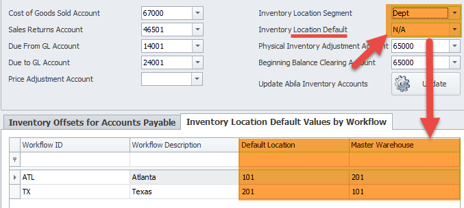 location default value. Additionally, create a workflow for each location and set a default location value and master warehouse value. This information will allow each location to use the transfer warehouse option to move inventory out of master into a local warehouse/location. Users will be forced to request items only from locations they are assigned too.