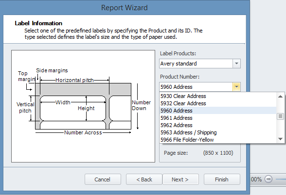 Choose the label vendor in the first box and the label number in the second, then choose next