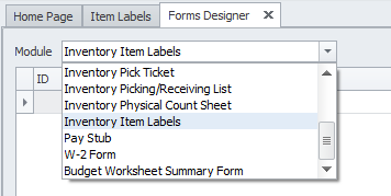 Choose the “Inventory Item Labels” module