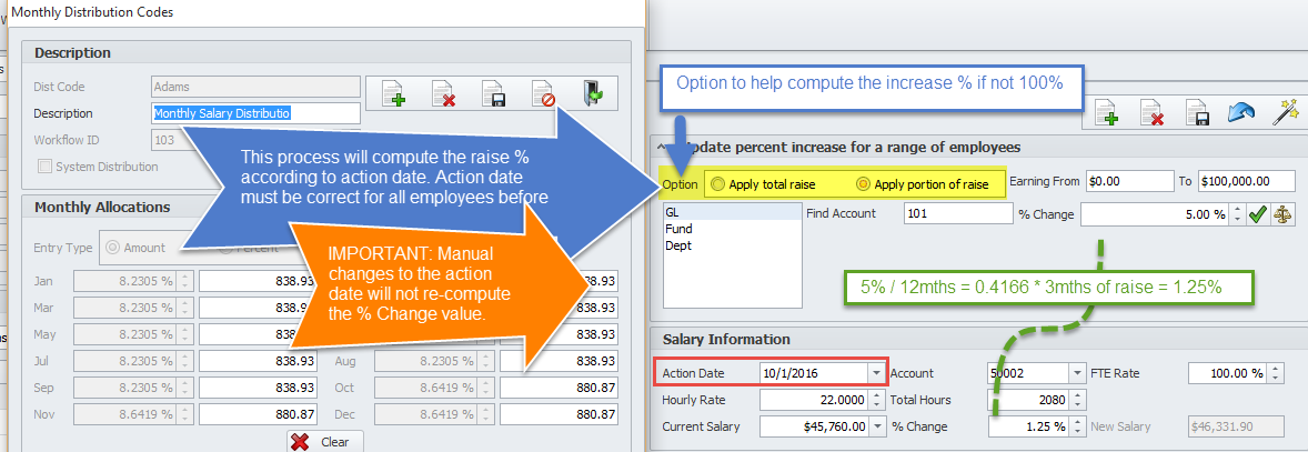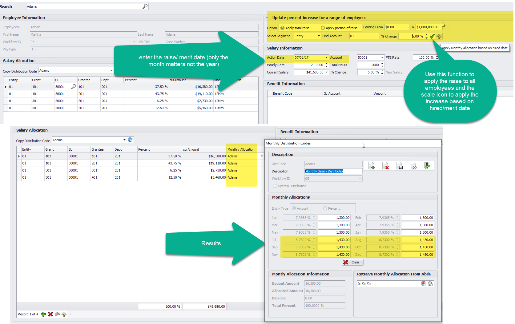 Additional Information on how to apply the raise/merit increase to a select range based on salary amount and salary expense code match.