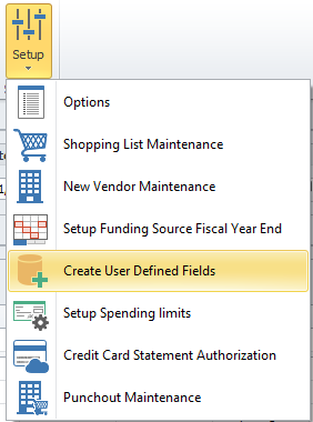 Setup: 1. Before you begin, you will need to enable a User Defined Field. Navigate to Requisition tab, select Setup > Create User Defined Fields.