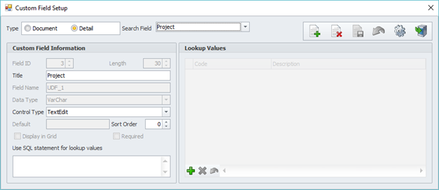 2. Choose the “create new” button. Select type of “Detail.” For title, name it accordingly. Control type will be ‘TextEdit.’ Everything else is OK as default. The result should mirror below.