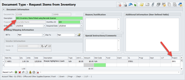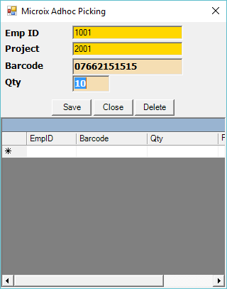 Using Inventory Scanner – Adhoc Picking “Project” field: