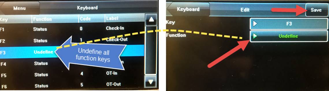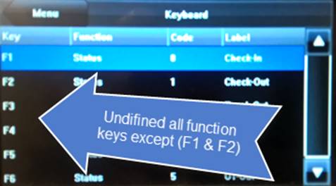 a. Navigate to Menu>Keyboard and set all function keys to “Undefine” EXCEPT for F1 and F2 Keys