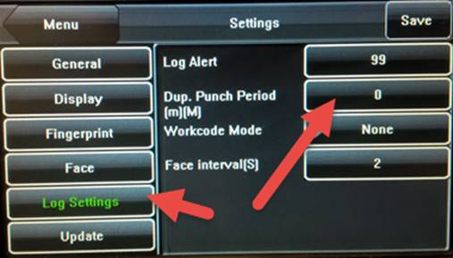 3. Set clock to not accept duplicate punch from same employee within 1 min. (Notes: Will not prevent duplicate punch if employee utilizes another clock)
