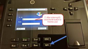 5. After entering the employee ID/badge ID, press the M/ OK button to start the search