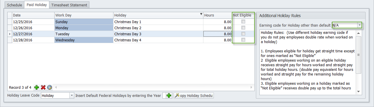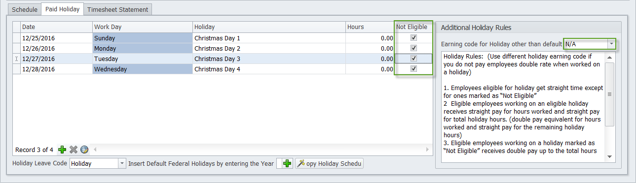 Setup for employees not eligible for holiday pay but if they work on a holiday then they get double time (2.0 Rate)