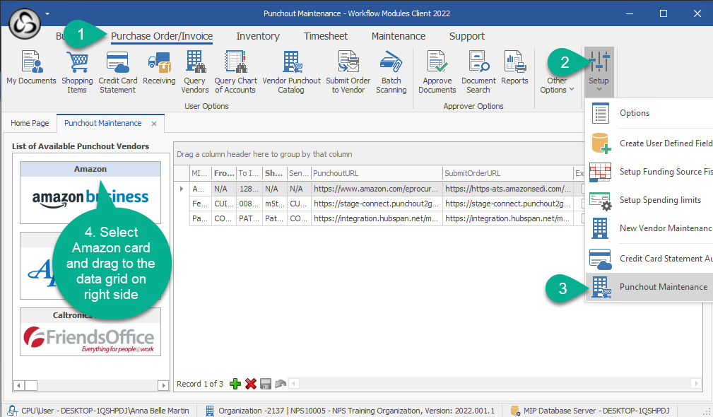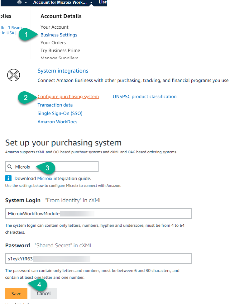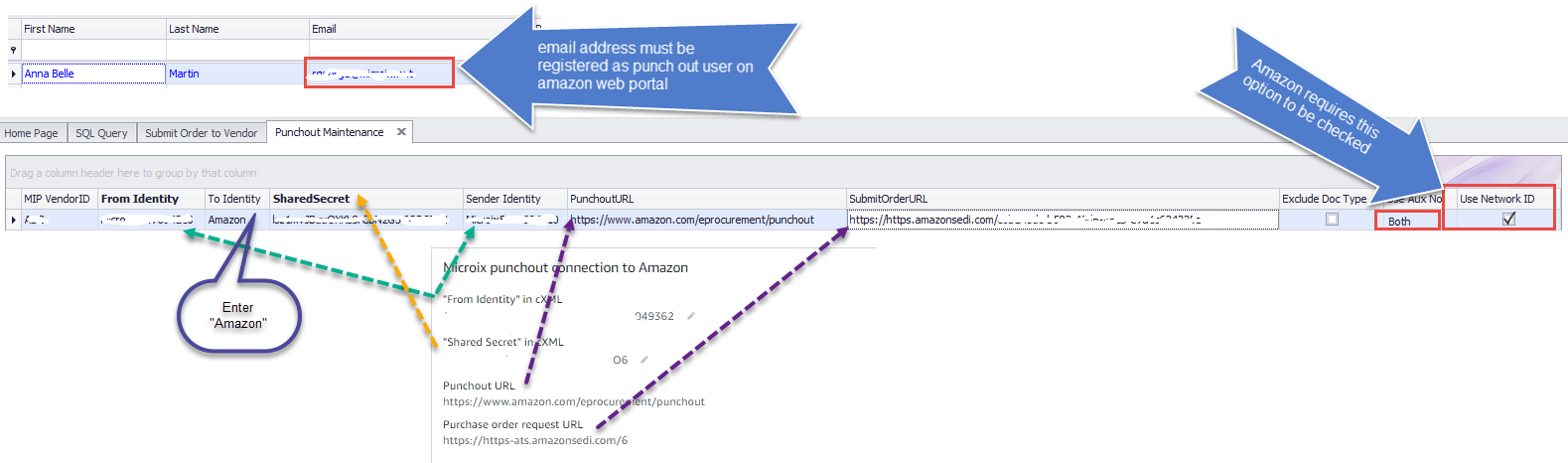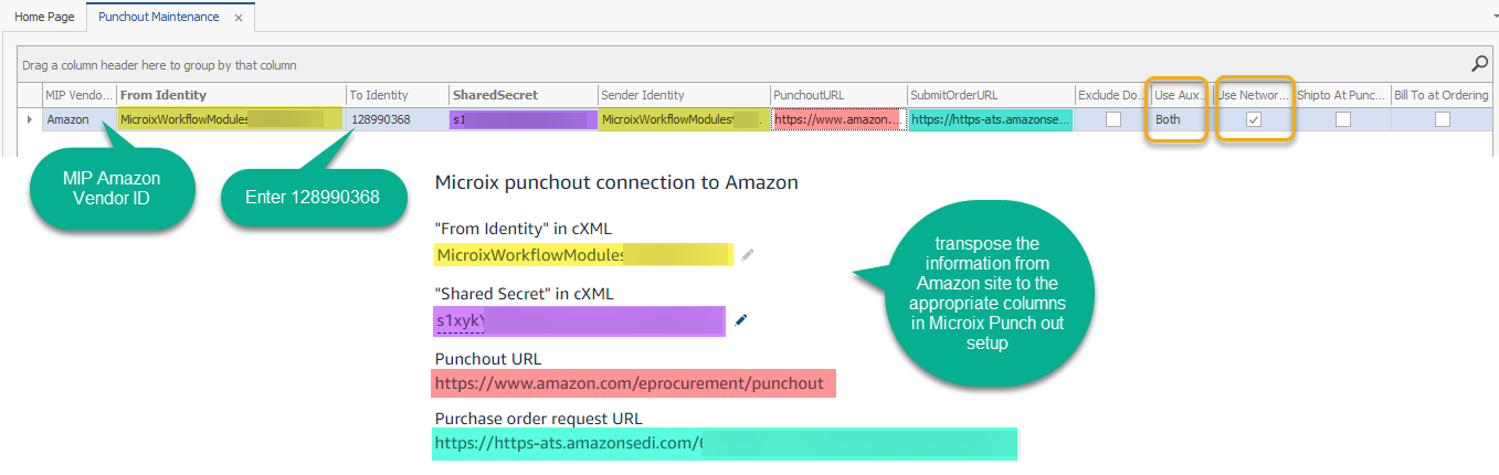 2. Configure Microix with your Amazon's Punchout credentials by navigating to the Punchout Maintenace.