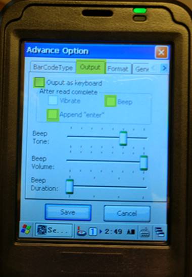 Resolution: Navigate to Start>Control Panel>Scanner>Output tab and check the box for the highlighted options. Then exit Microix Barcode App and re-open to test the scanning.