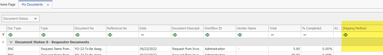 User Defined Field shown on the My Document List when "Display in Grid" is checked: