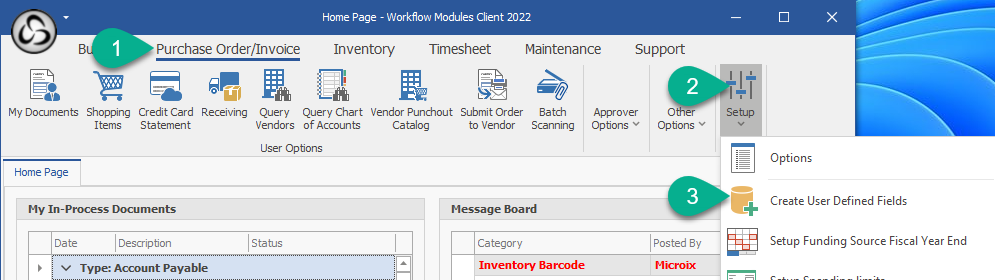 User defined fields (UDF) is customized data created specifically for organization use. To create UDF apply the following steps listed here in the screen shots. 1. Follow steps to open the User Defined Field setup form