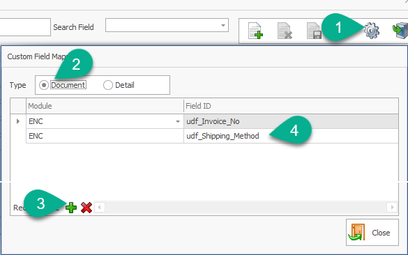 Finally, you map your user defined field to the Microix Document Type as shown below:
