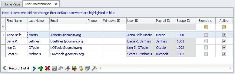 Note: User names highlighted in blue indicates that, they have not changed their default password.