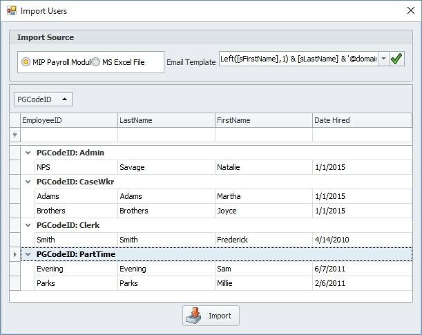- Import users from Abila MIP FA Payroll Module or Excel Worksheet