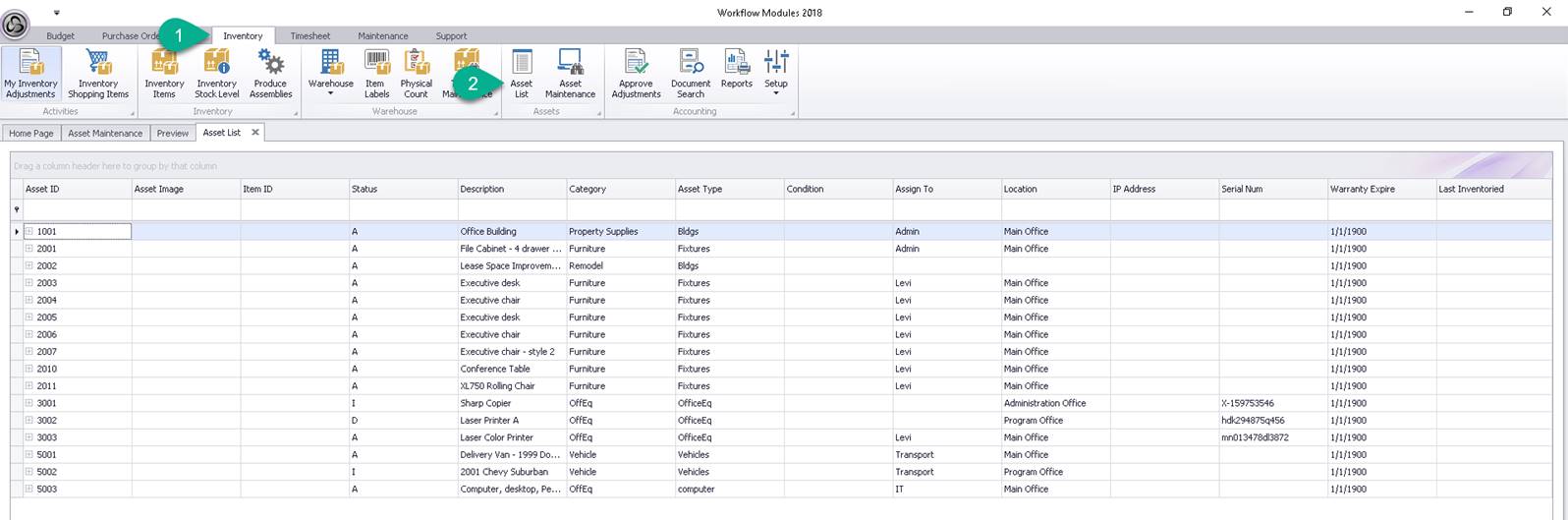 Access the Asset List, from the Inventory menu tab.
