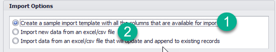and choose "NO" to access the import from Excel/CSV option. Use option 1 to product an import template and option 2 to import the complete list of assets