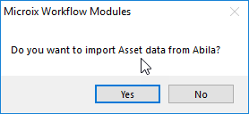 and choose "YES" if you would like to import all assets from MIP's Fixed Asset Module.