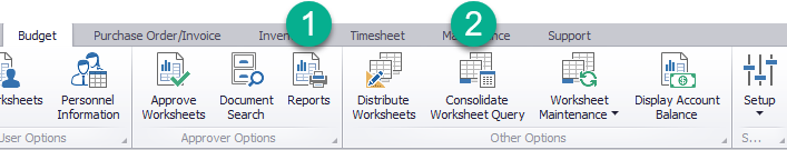 Grant security access to the ribbon menu “Consolidate Worksheet Query” (Maintenance>Security)