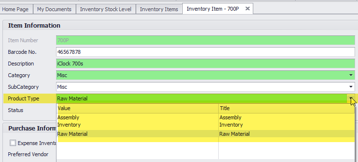 Items marked as Assembly cannot be ordered on a purchase order but can be dispensed or sold