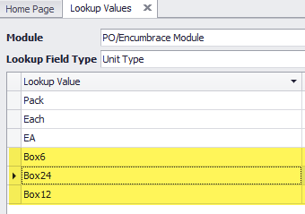 Step 1. Navigate to Maintenance>Global Options>Global Lookup and create multiple UOM lookup values as needed