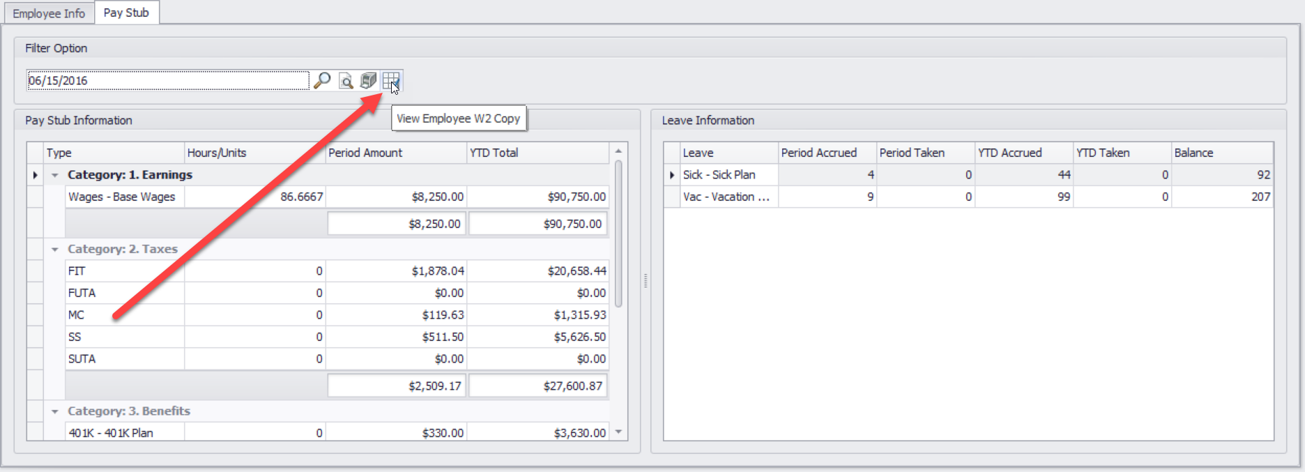 Once the above setup is done, W2 form can be viewed from Employee Pay Stub.