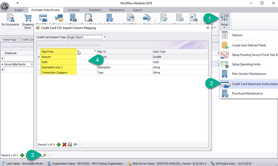 Step 2. Map the AMX statement columns names to be imported by Microix as shown below. This step should only be done once and will not be repeated unless the CSV file structure changes
