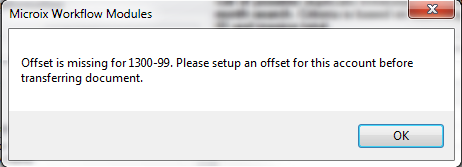 ISSUE:A new workflow was created in Microix that attached to Inventory. Since the creation of this work flow Purchase Orders have been placed and received in the new workflow. When attempting to pay an API Invoice an error appears. There is no option to choose for the 1300 Inventory GL with an offset.