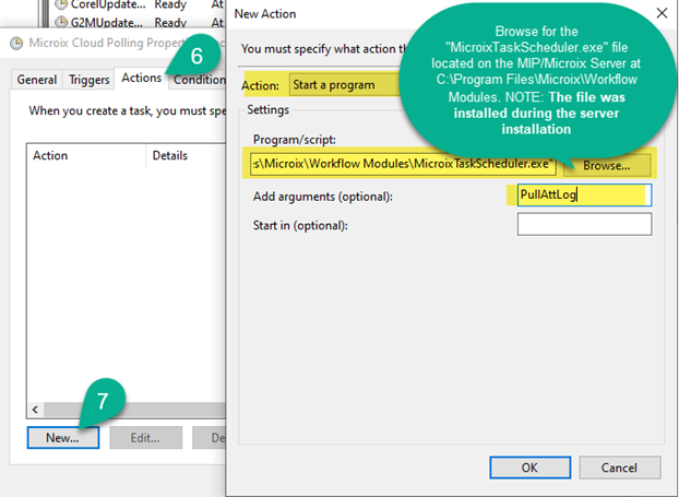 To begin the process, verify the version of workflow modules is 2019.1,1 or higher. Open the Windows Task Scheduler from the MIP/Microix Server and follow the steps to create a scheduled task to retrieve the time clock data from the MicroixCloud.com/tcm/ Time Clock Manager Server.