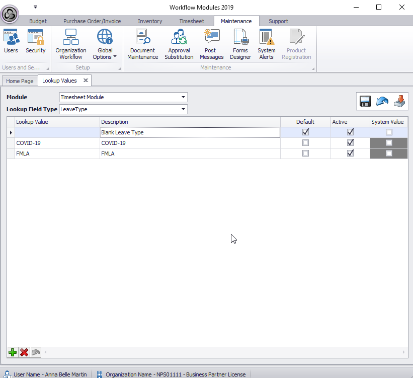 1. Setup COVID-19 as a Leave type. Navigate to Maintenance>Global Setting>Global Lookup: