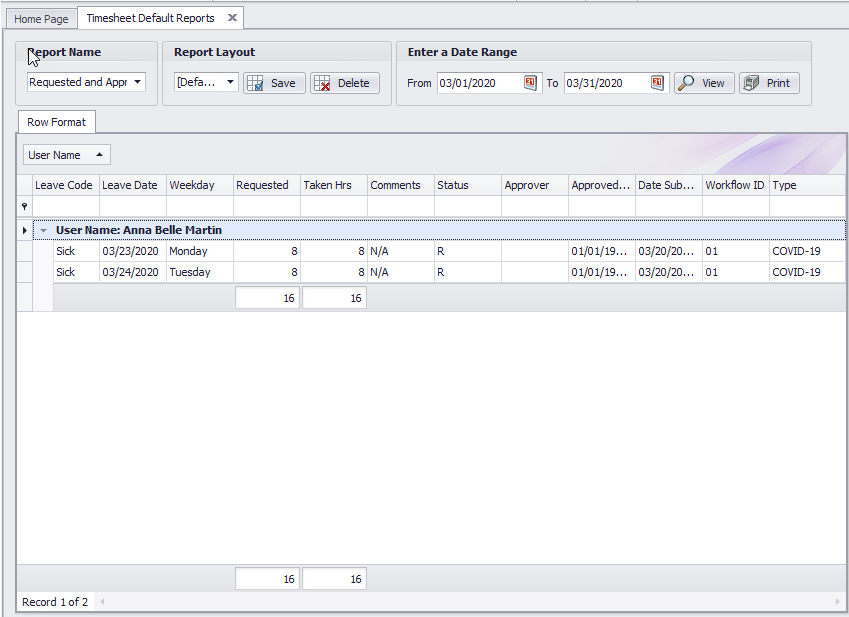3. Accounting/Supervisors will be able to run a report showing the total leave by employees that are related to COVID-19.