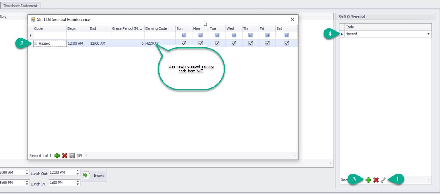 - Create earning code in MIP for the differential pay, most likely it will be a rate multiplier or fixed hourly amount.