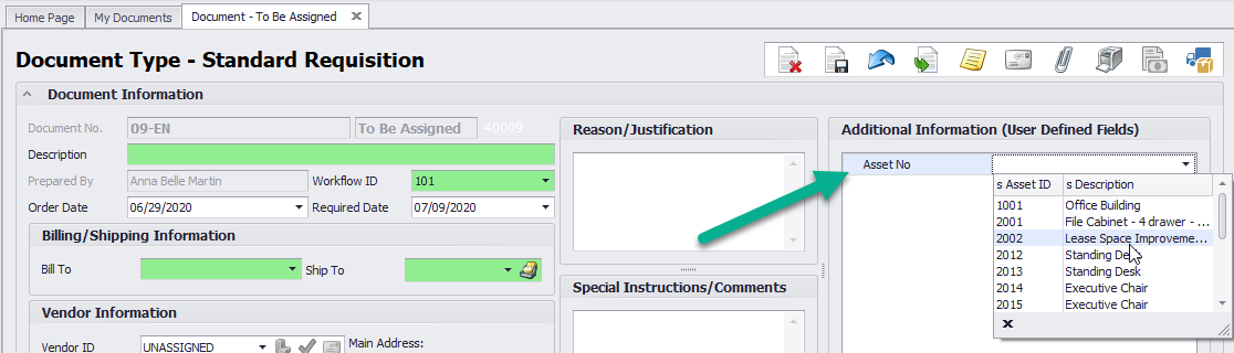 3. When creating a purchase order, employees are able to link the purchase to an existing asset number for reporting purposes