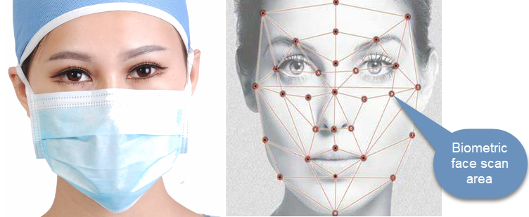 When scanning an individual face, the biometric reader will scan the areas identified in the picture below. Unfortunately, wearing any face covering will hinder the clockâs ability to recognize the employee. It is recommend to remove any