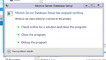 Issue: Downloaded the installer for Microix Workflow Modules v2021, un-zipped the files and ran the srvsetup.exe. file. Immediately , an error occurred stating the application stopped working:
