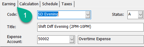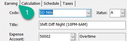 Set Up of Rate #1 - MIP Earning Code - Shift Differential Evening