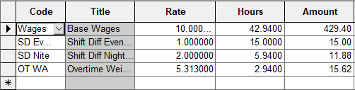 an employee of Hospital worked 42.94 hours at regular wages ($10.00 / hr.), 15 hours at a Evening Shift differential rate (additional $1.00 / hr.), and 5.94 hours at a Night Shift differential rate (additional $2.00 / hr.). We will demonstrate how the 2.94 hours