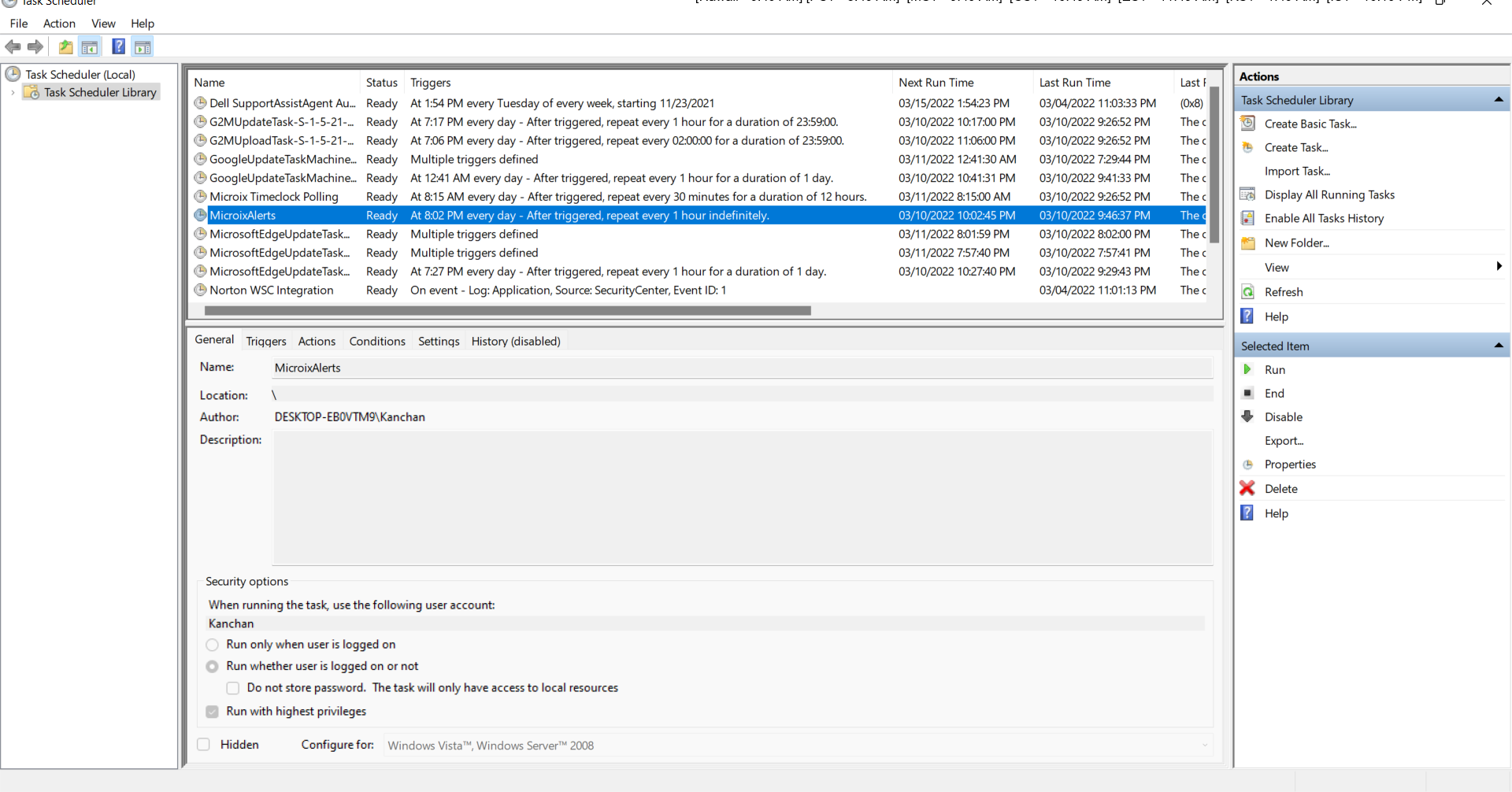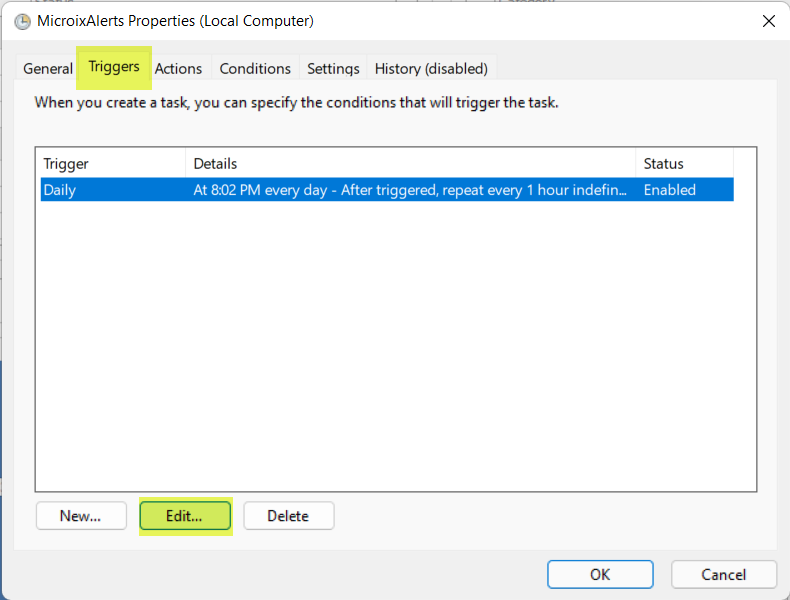 Setup Task Scheduler for Microix Alerts on Microix SQL Server: