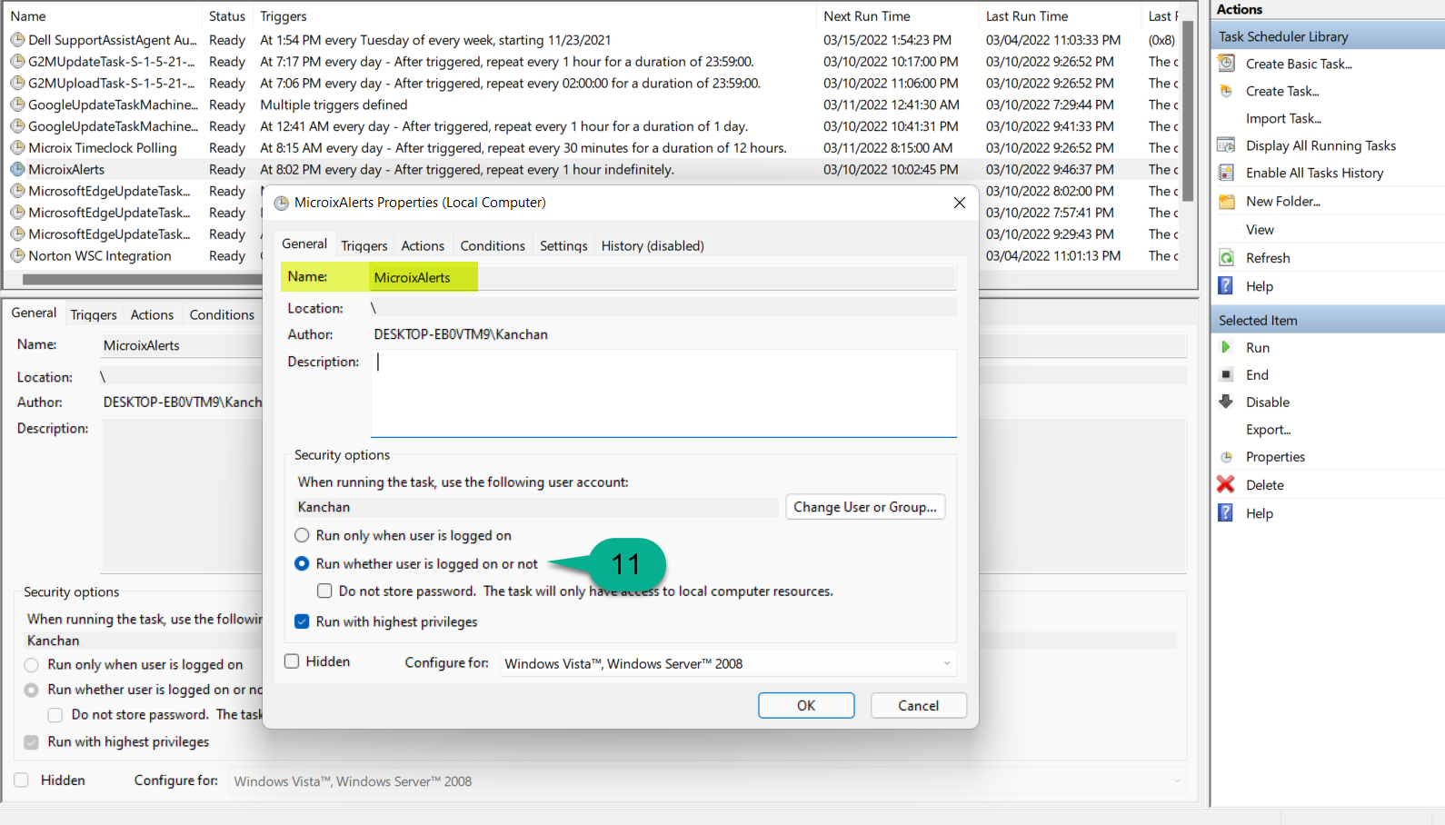 Step 10: Open Task Scheduler and create a new Task (Administrative Tool>Task Scheduler)