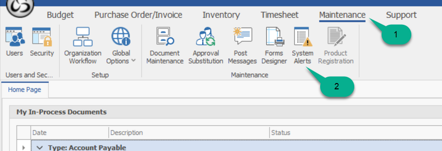 Step 1: Login as “Admin” and navigate to Maintenance – System Alerts